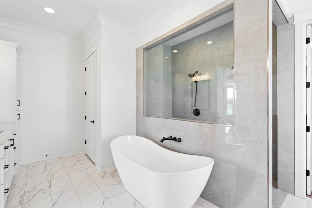 Soaking tub, walk-in shower, dual vanities, and a walk-in closet big enough to get lost in.