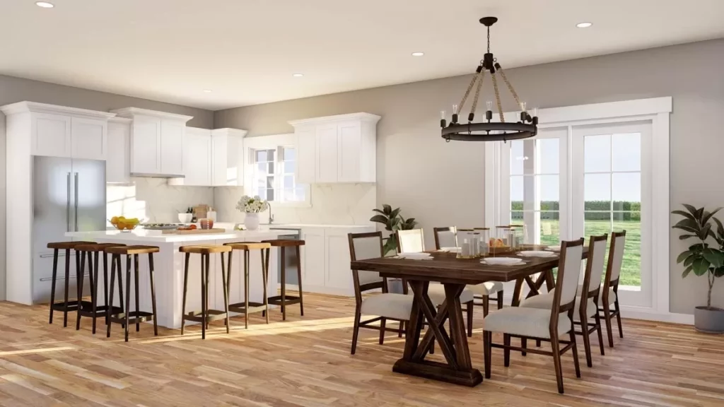 It’s open to the dining room too, which flows right out to — you guessed it — another 8-foot-deep porch.