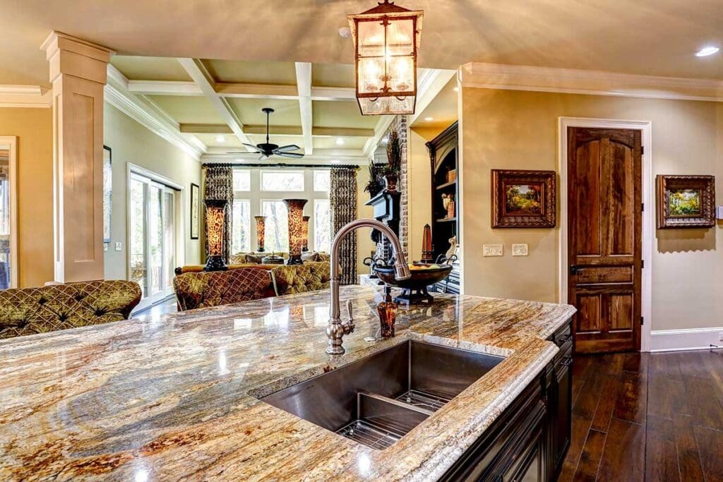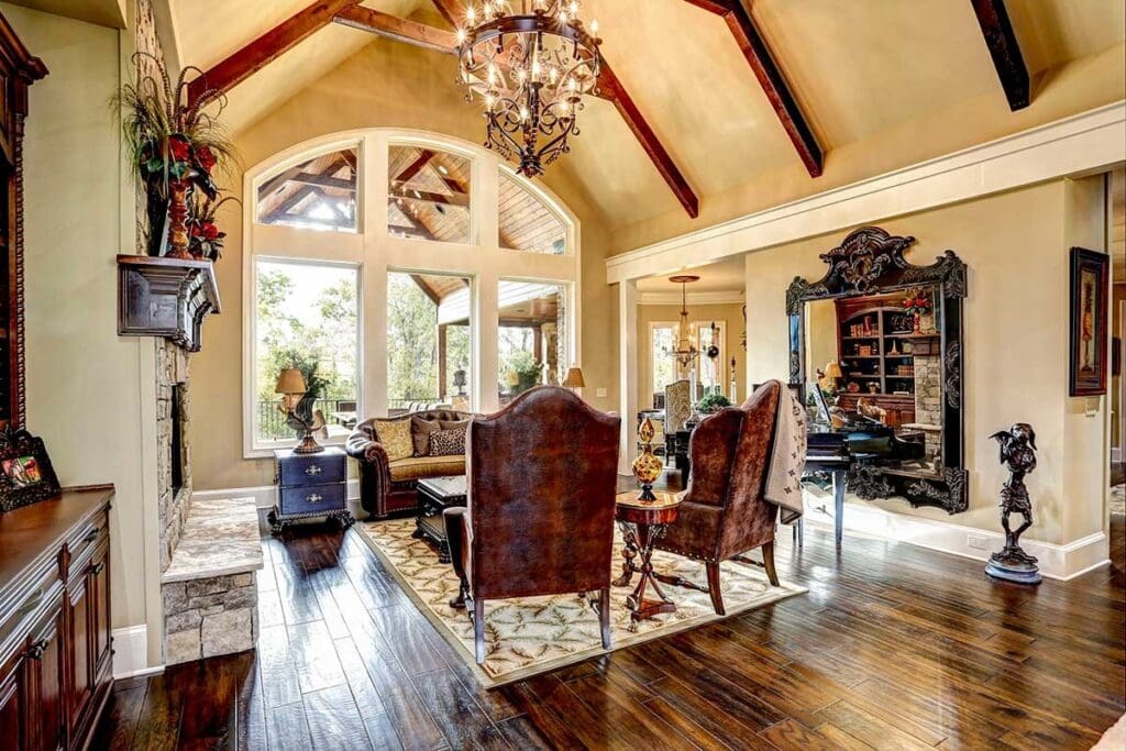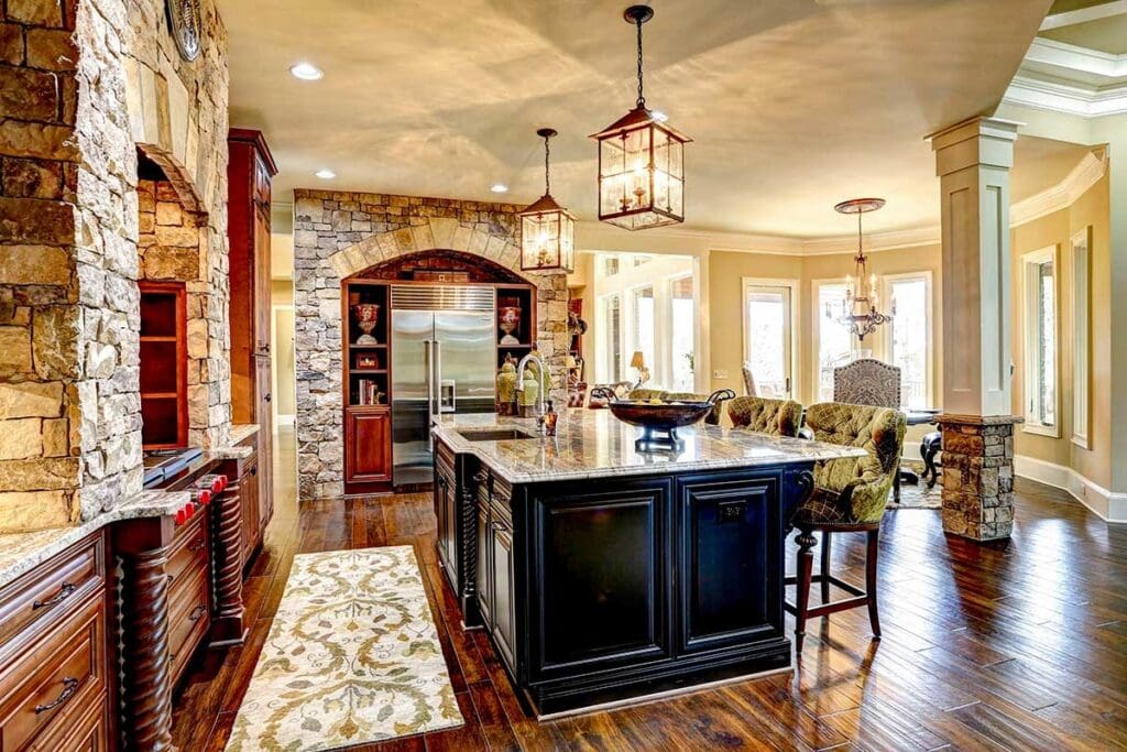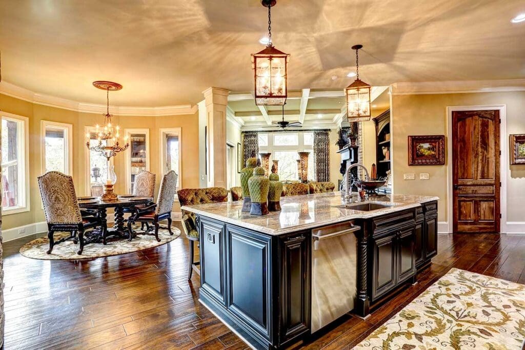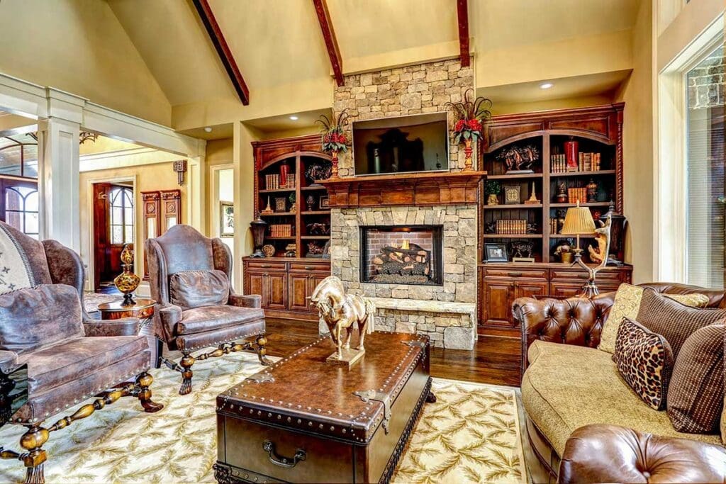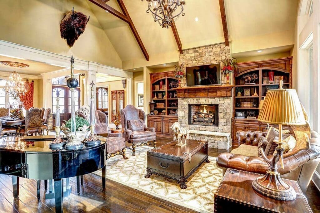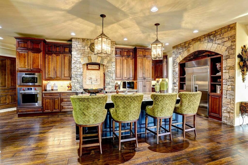 And with neutral tones in the kitchen, stone and wood accents, and those coffered and tray ceilings adding architectural drama, there’s enough character to stand on its own—or be dressed up to match your vision.