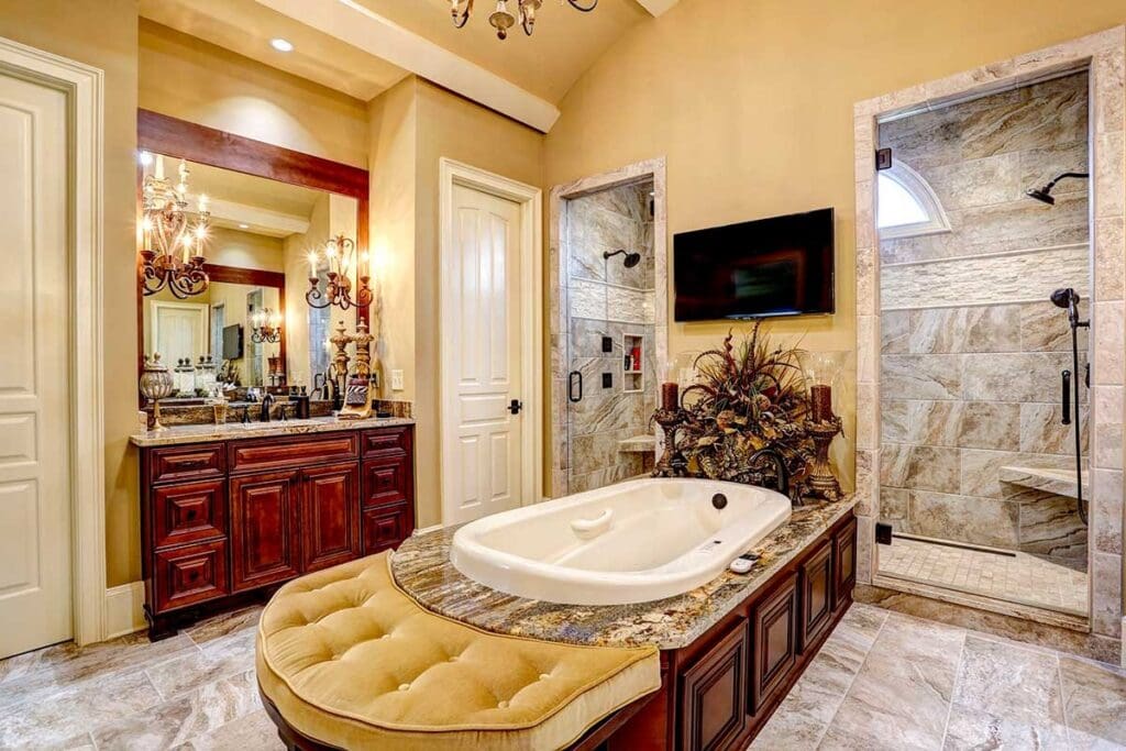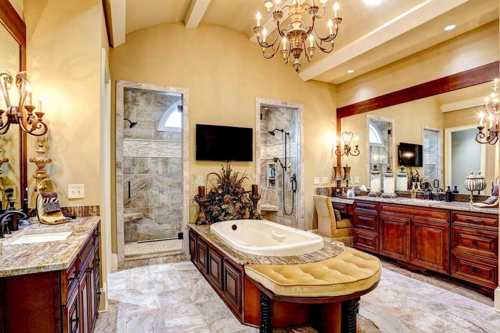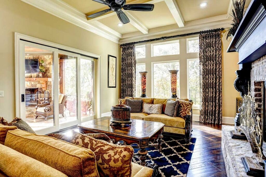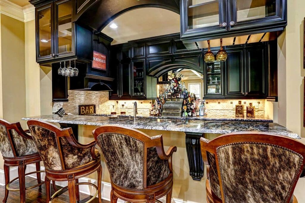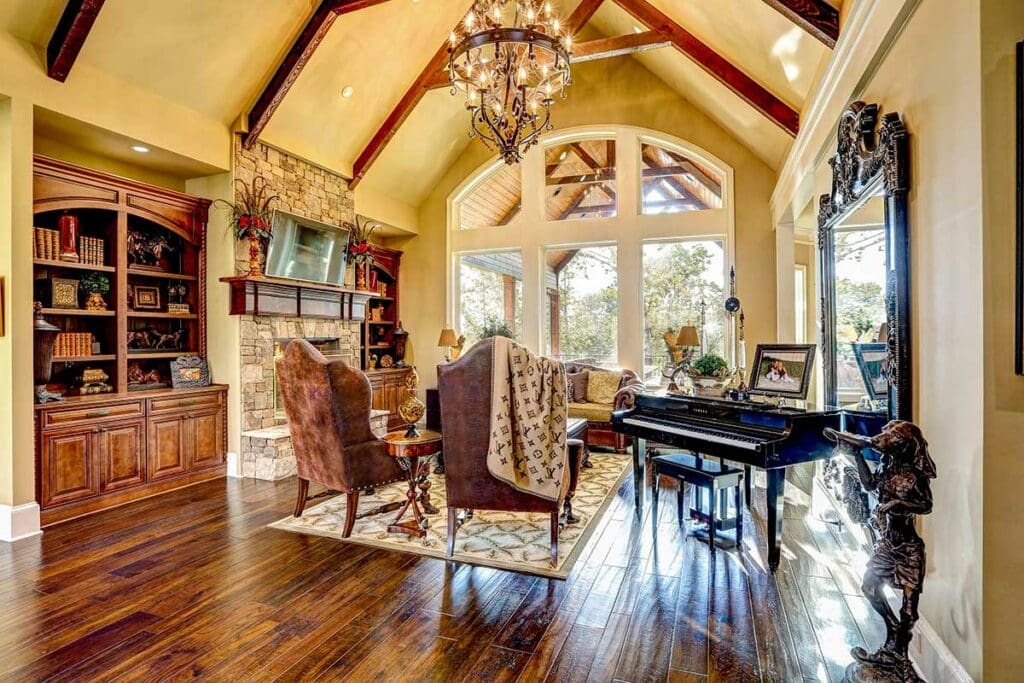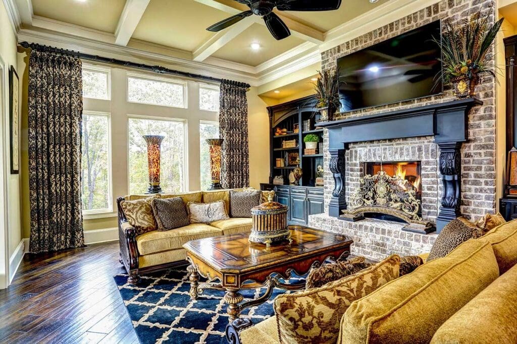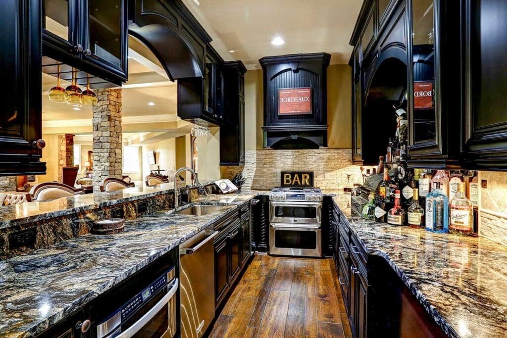 And with neutral tones in the kitchen, stone and wood accents, and those coffered and tray ceilings adding architectural drama, there’s enough character to stand on its own—or be dressed up to match your vision.