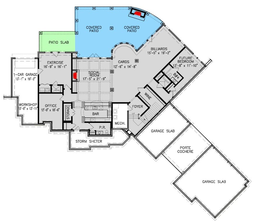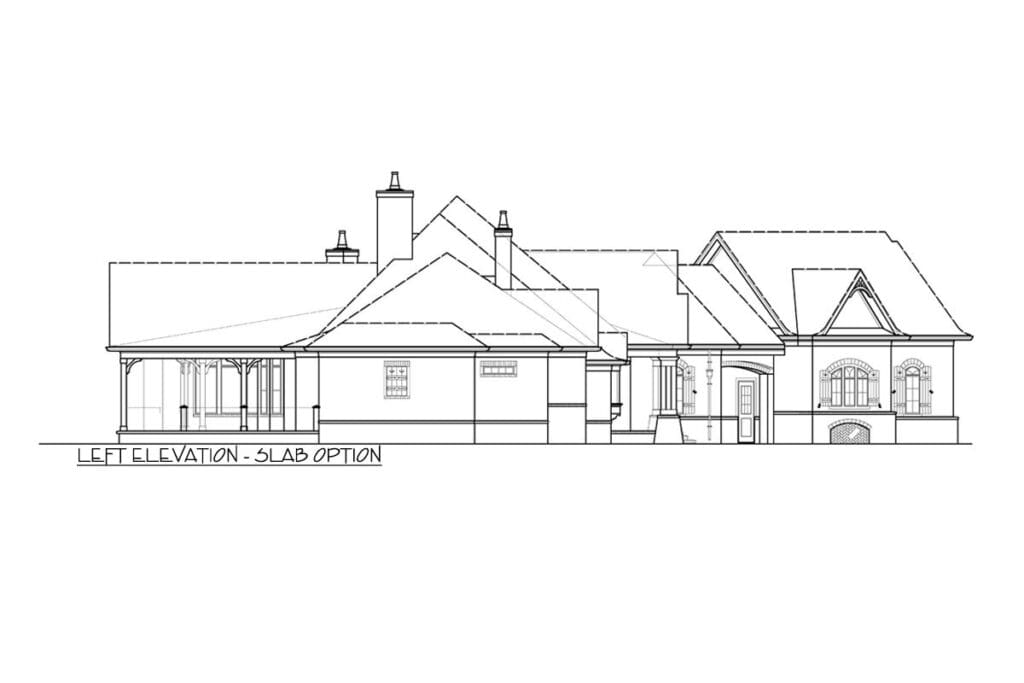 This home plan includes a porte-cochere, which is fancy talk for a covered driveway that connects your two-car garage to the single bay garage.