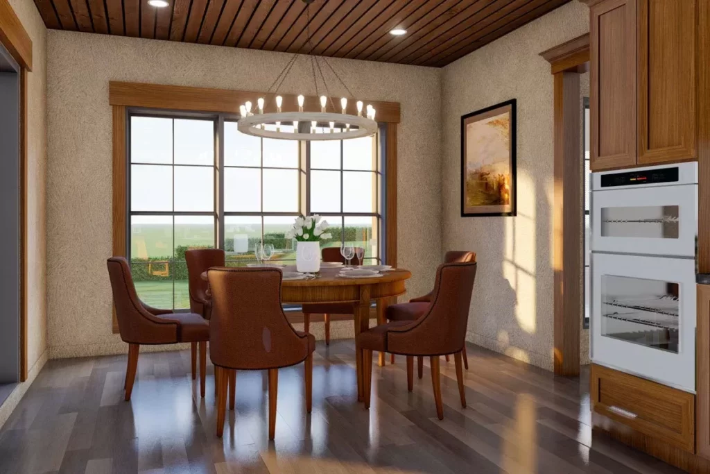 Adjacent to the kitchen, the breakfast room offers a serene spot to sip your morning coffee while soaking in the scenic outdoor views.