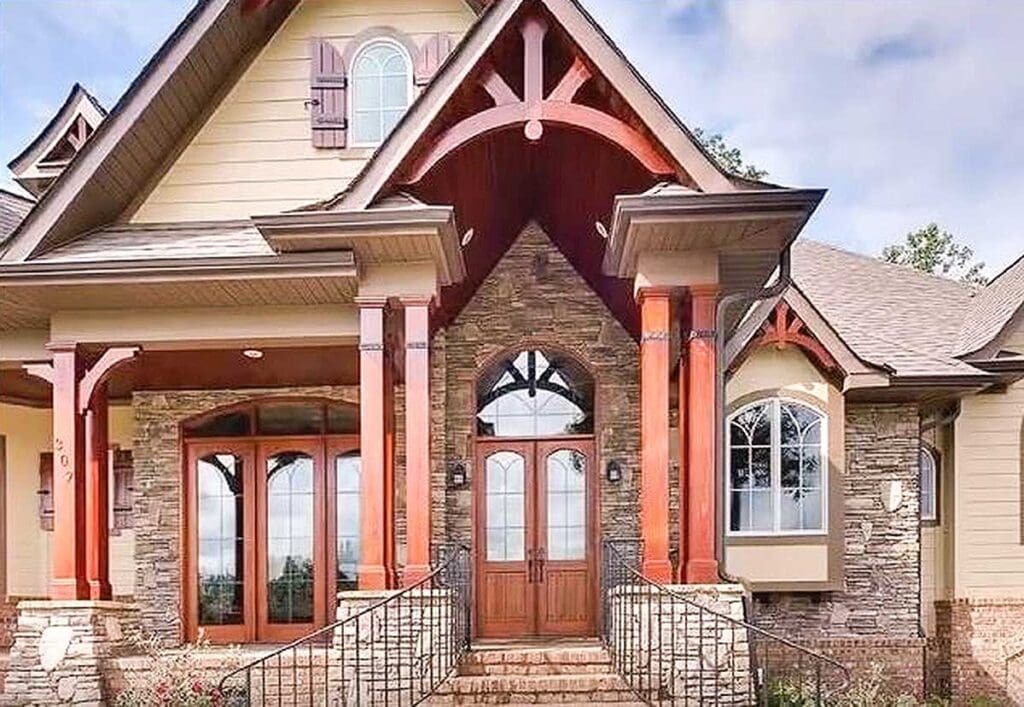 With ornate gabled peaks, a decorative dormer, and a roofline that looks like it belongs on the cover of a real estate agent’s dream portfolio, this home knows how to make an entrance.