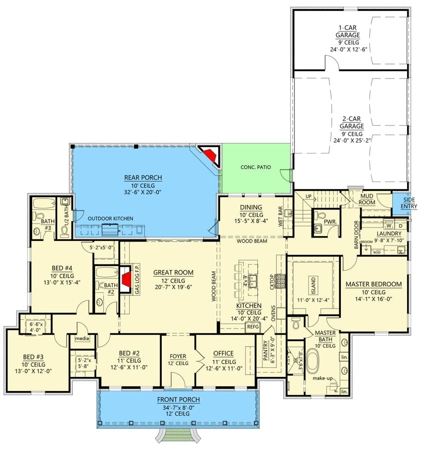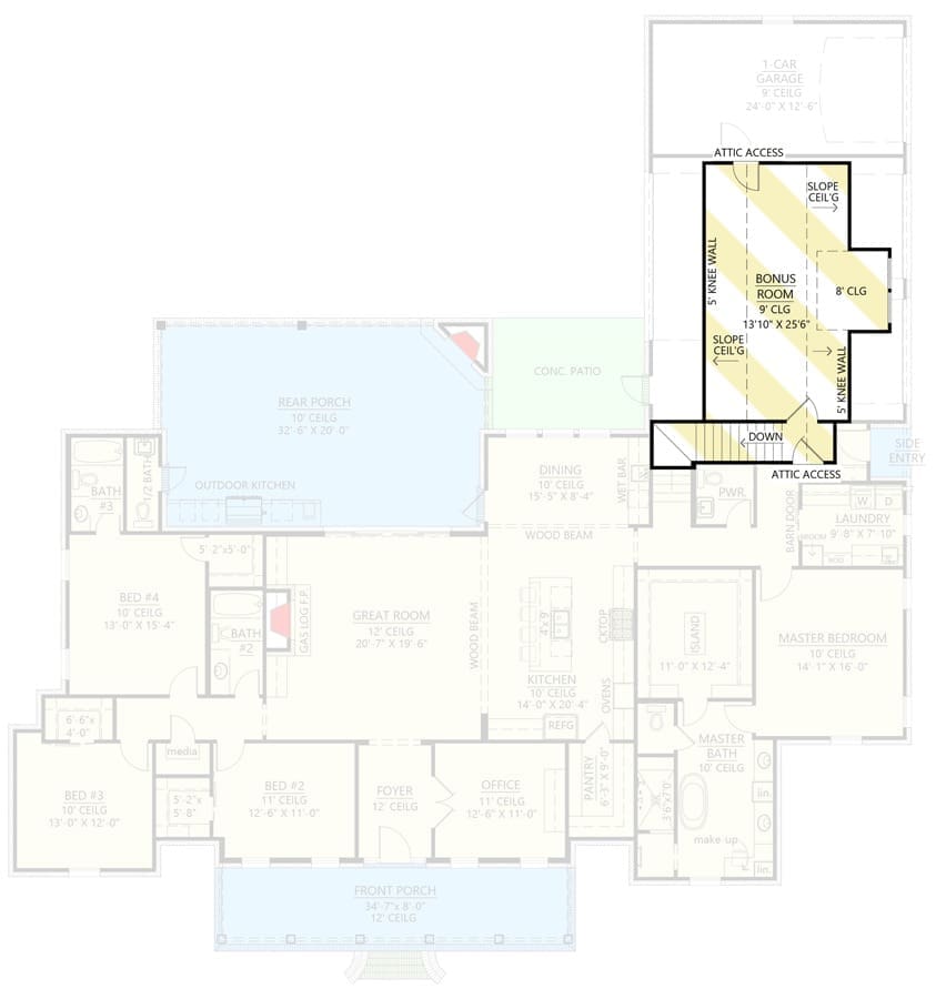 4-Bedroom 1-Story Acadian House with Bonus Expansion (Floor Plan)