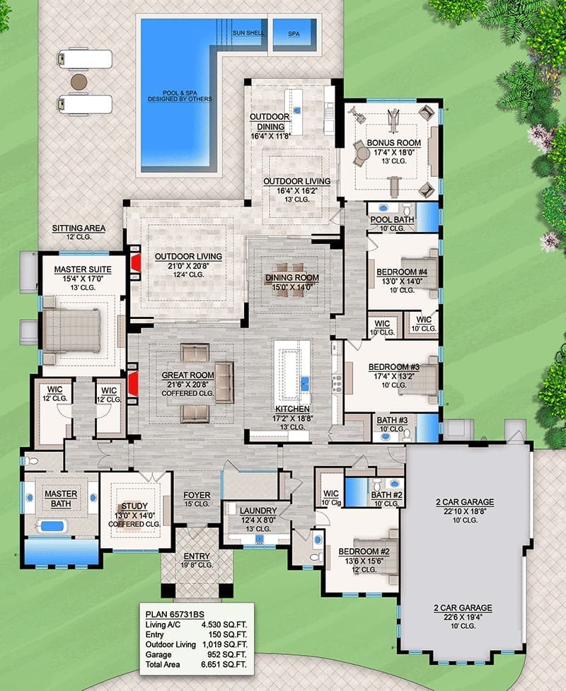 4-Bedroom 1-Story Contemporary Beach Home with Study Room (Floor Plan)