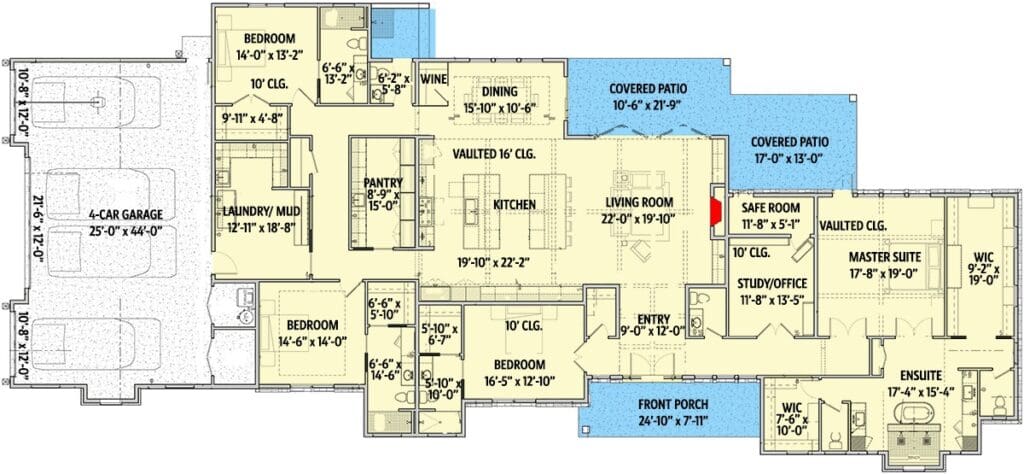 4-Bedroom 1-Story Industrial Modern Farmhouse with Office and Safe Room (Floor Plan)