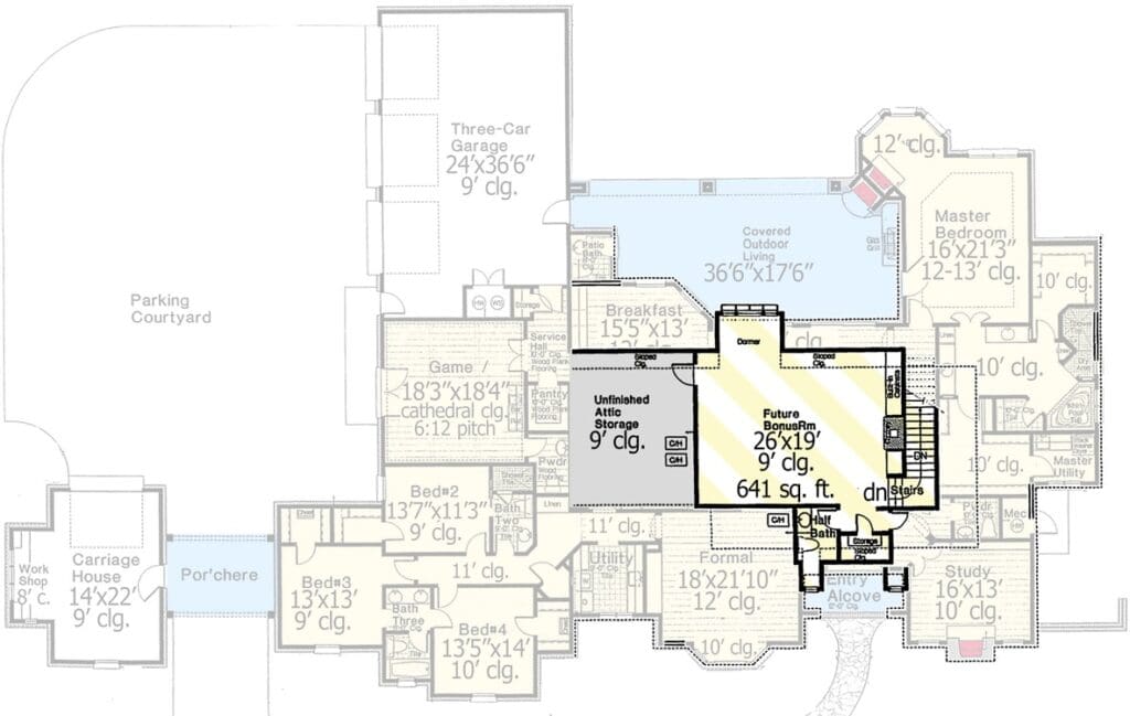 Still need more room? Oh, don’t worry—this plan has bonus space upstairs that’s just waiting to be finished when the time is right.