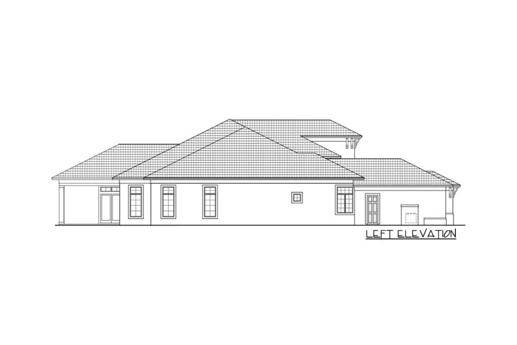 No, this Mediterranean beauty greets you with two double garages—one stretching out on each side—forming a classy U-shape with an inviting courtyard in the middle.