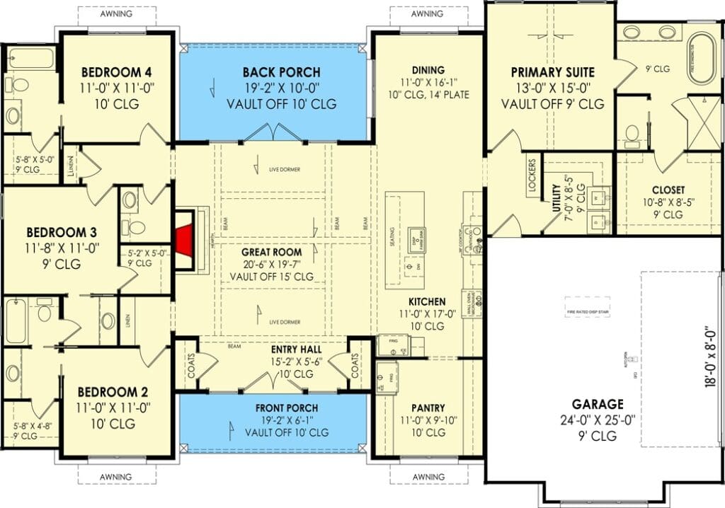 4-Bedroom 1-Story Modern Hill Country House with Vaulted Great Room (Floor Plan)