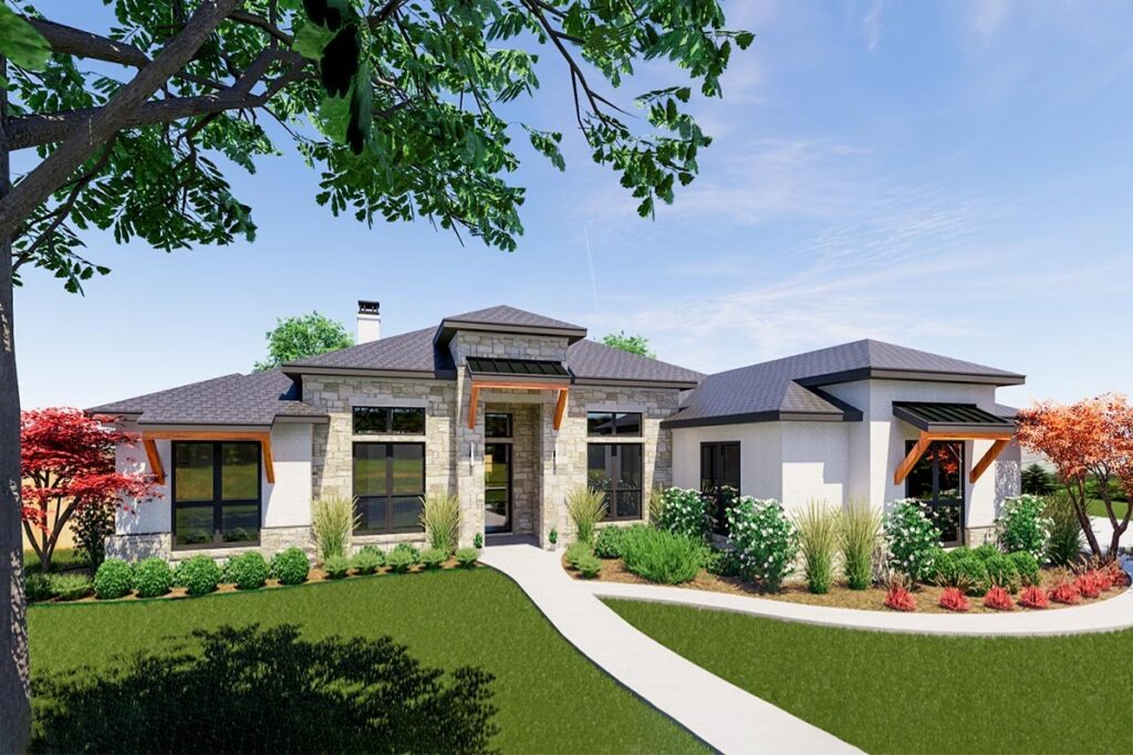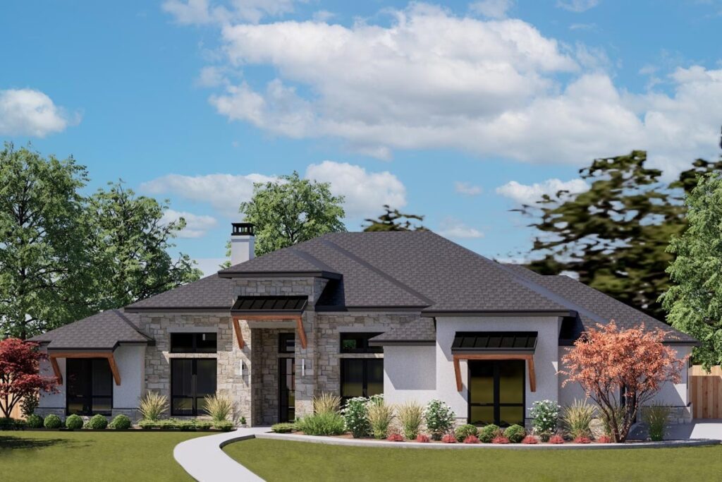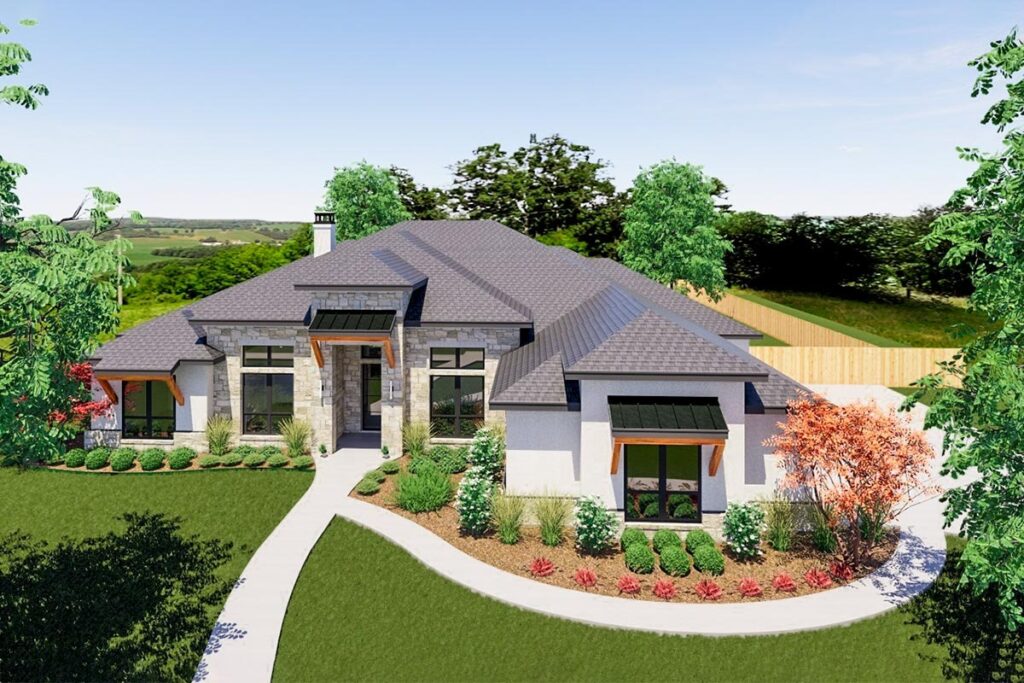 4-Bedroom 1-Story New American Ranch with Luxurious Split-Bed Layout (Floor Plan)