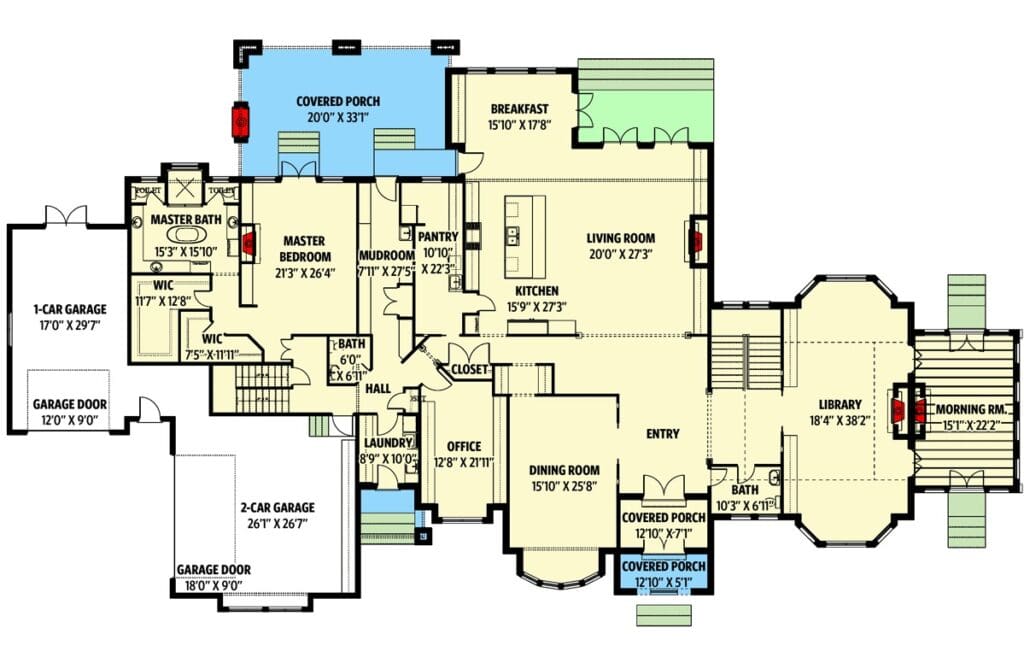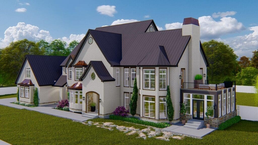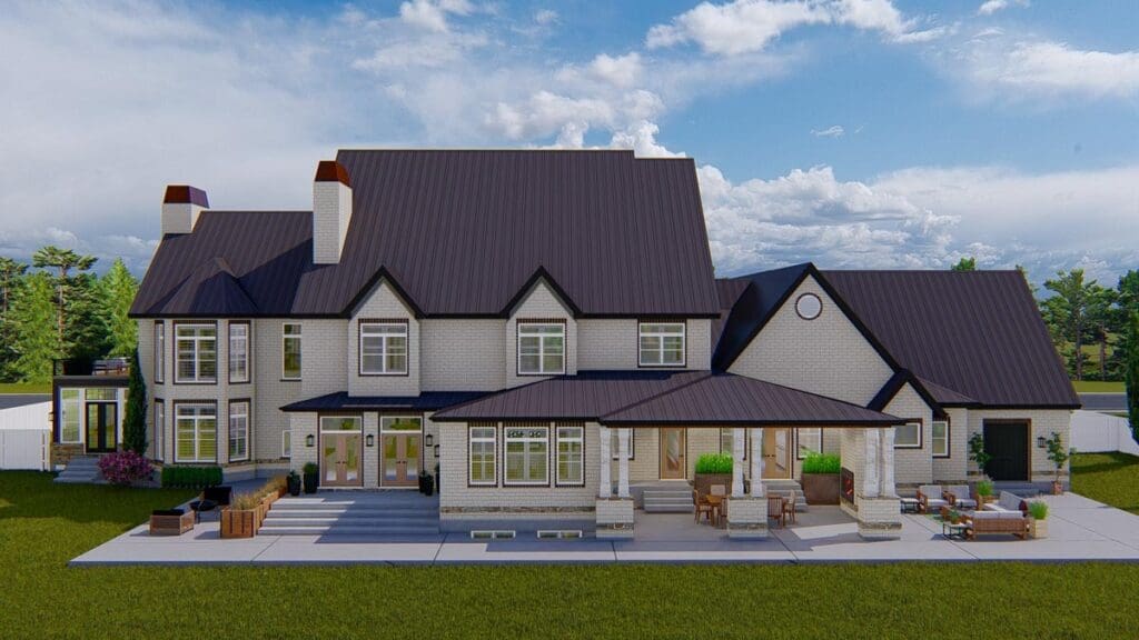With over 10,000 square feet of living space, four bedrooms, 4.5+ baths, and a two-story library that could make any bookworm weep with joy, this plan is what luxurious living looks like.