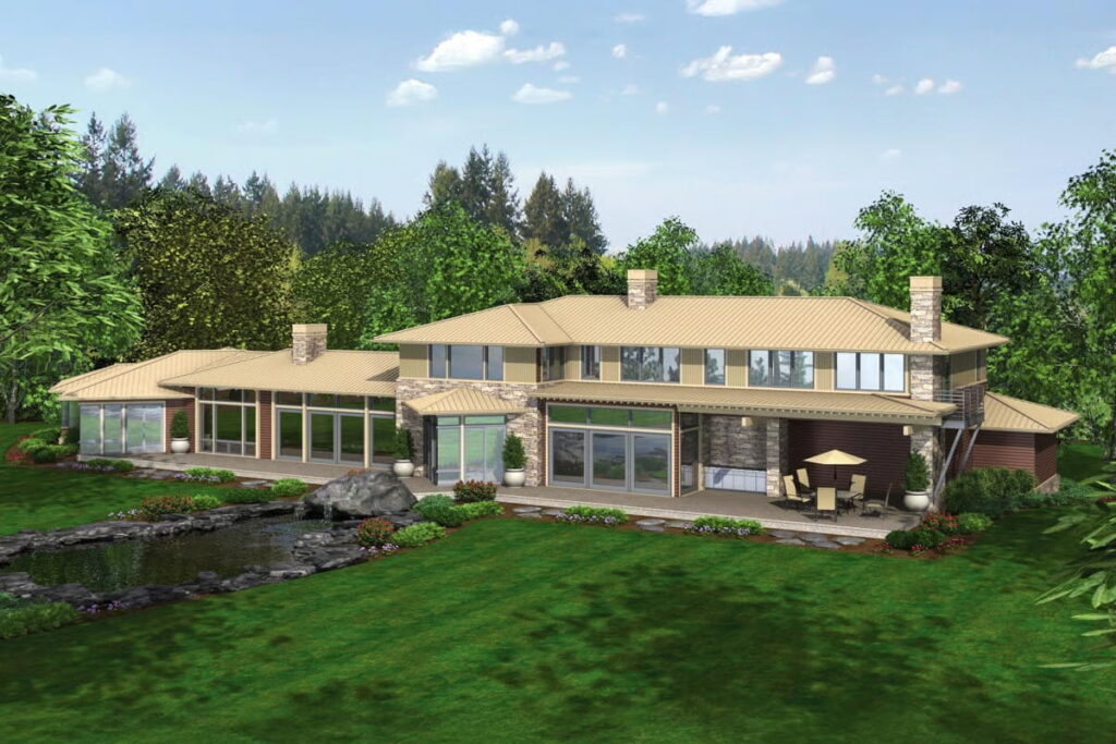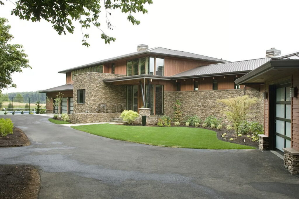 The low-slung roofline gives off sleek Frank Lloyd Wright vibes, hugging the landscape instead of trying to dominate it.