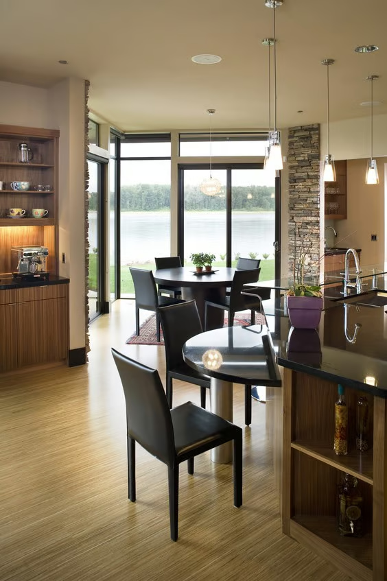 Now let’s head over to the casual wing of this architectural beauty—a side of the house that says, “Kick off your shoes, pour a coffee, and let’s hang out.”