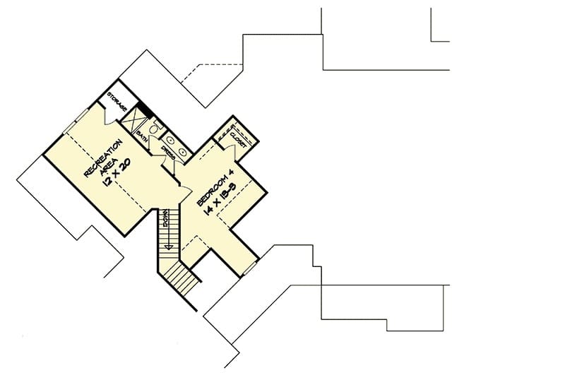 This plan includes an optional bonus space above the main floor with a huge rec room and fourth bedroom.