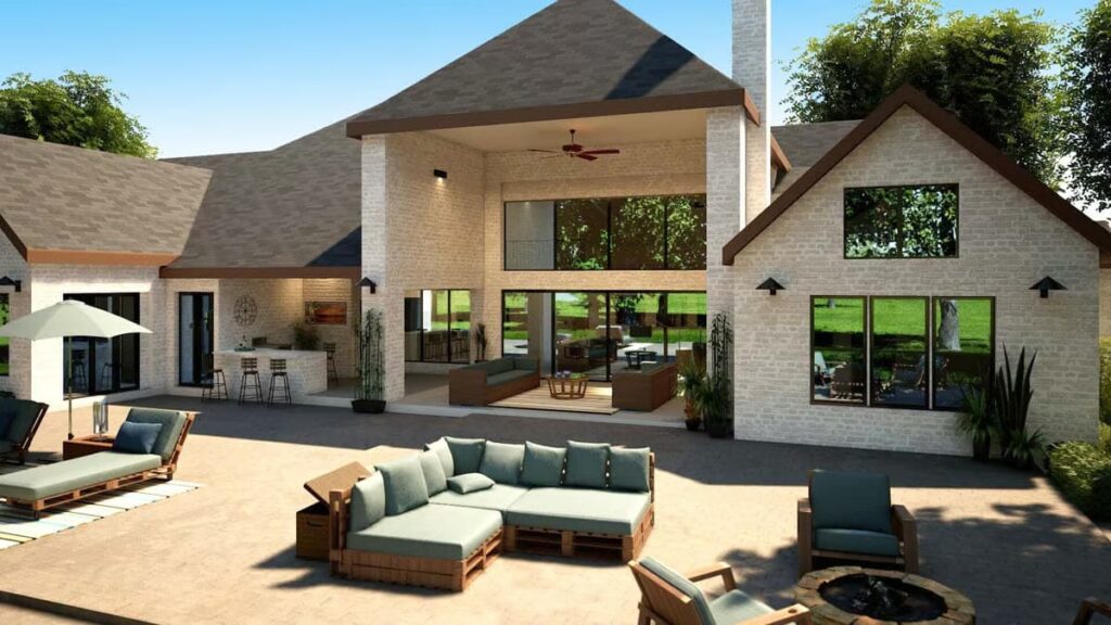 And speaking of the backyard, get ready for some serious outdoor living spaces — including a built-in barbecue porch that’s just begging for burgers, brisket, or your best “grill master” impersonation.