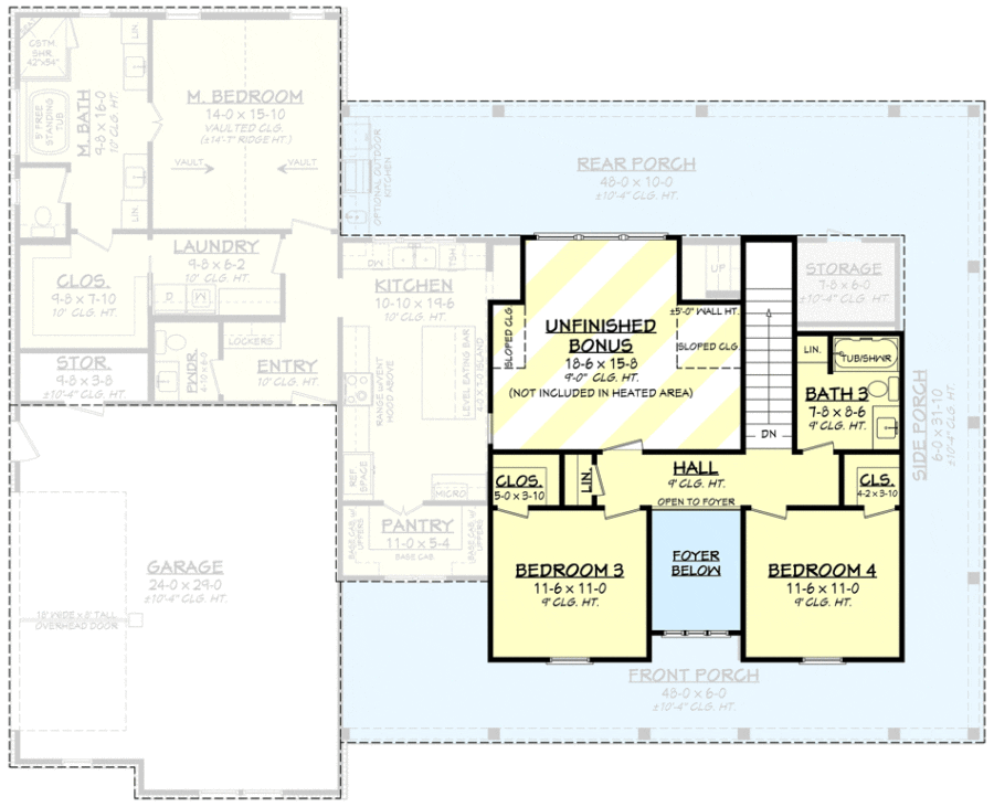 4-Bedroom 2-Story Modern Farmhouse with Optionally Finished Bonus Room (Floor Plan)