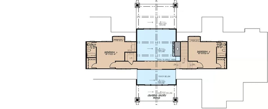 And oh yeah, upstairs? A bridge-style hallway connects two additional bedroom suites—because of course this house connects rooms with a bridge.