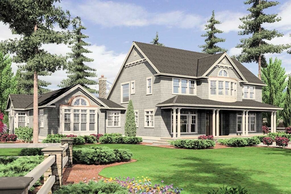 4-Bedroom Dual-Story Rustic Shingle House with Guest Wing and Palladian Charm (Floor Plan)