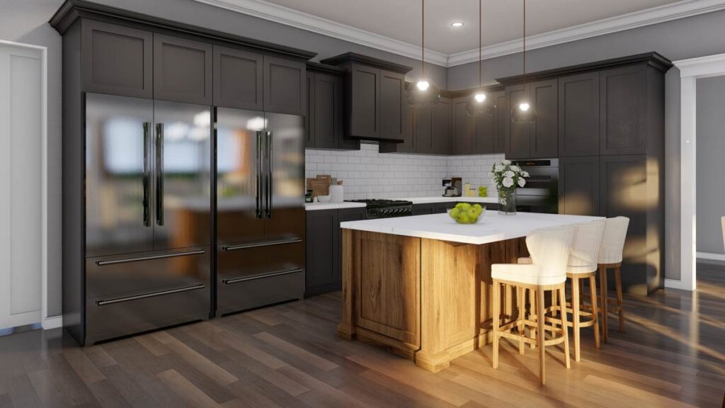 Immediately, you’re greeted with a wide-open space where the great room and kitchen flow seamlessly into one another.