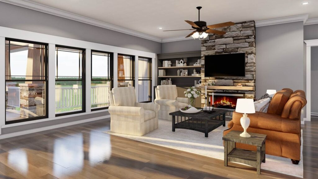 This mountain-style house plan doesn’t just give you four walls and a roof.