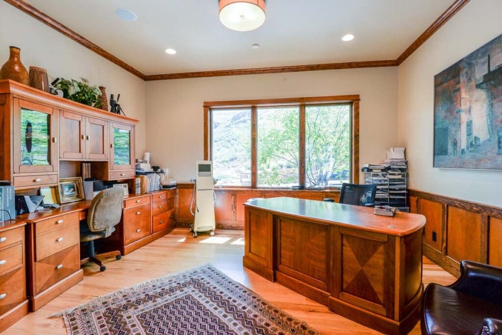 The main study is open and filled with light, but if you need a quiet Zoom zone, head to the tucked-away home office with sliding pocket doors and its very own private patio.