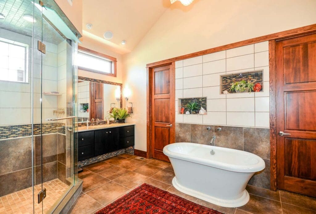 Step into the en suite bath, and boom—there’s a freestanding soaking tub that’s basically begging for bath bombs and a glass of wine.