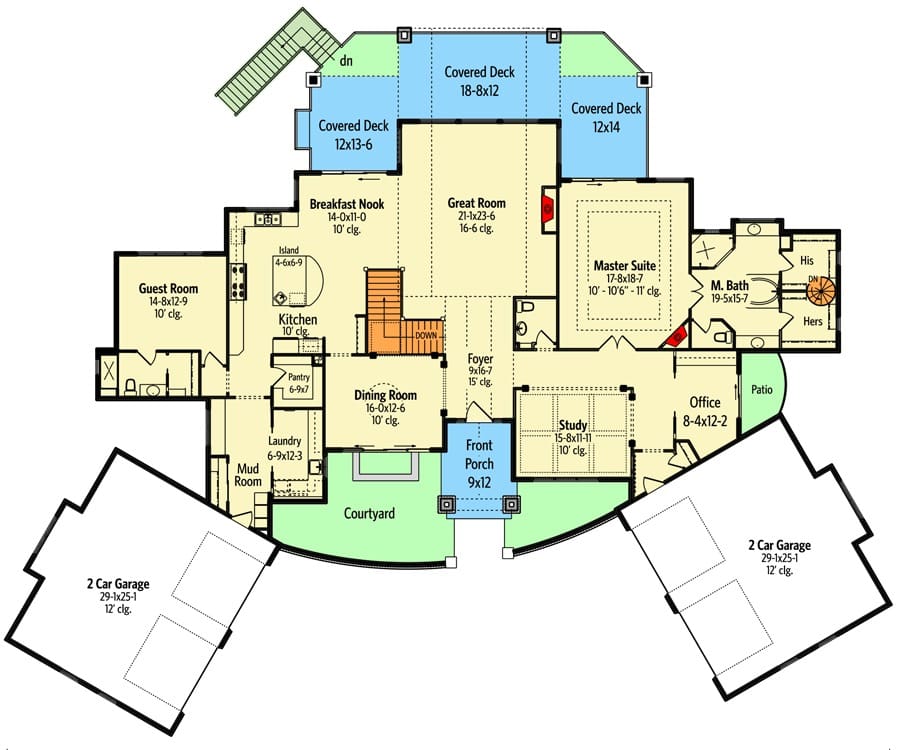 We all need a space to work—or at least pretend we’re working while we scroll memes. This house plan gives you not one, but two office options.