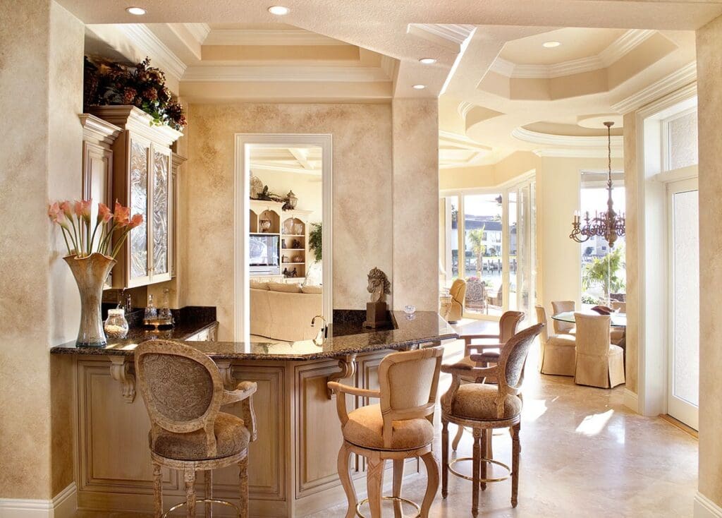 The library offers a quiet, elegant space for work or reading, while the wet bar in the living room makes entertaining feel effortless.