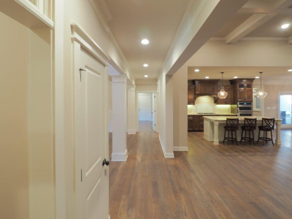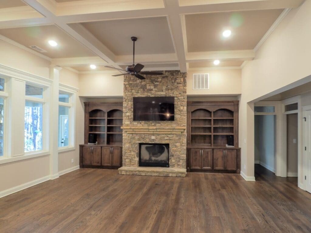 From there, the house opens into a massive family room topped with a 12-foot coffered ceiling. It’s big enough for holidays, Super Bowl parties, or just a Saturday evening with your favorite takeout.