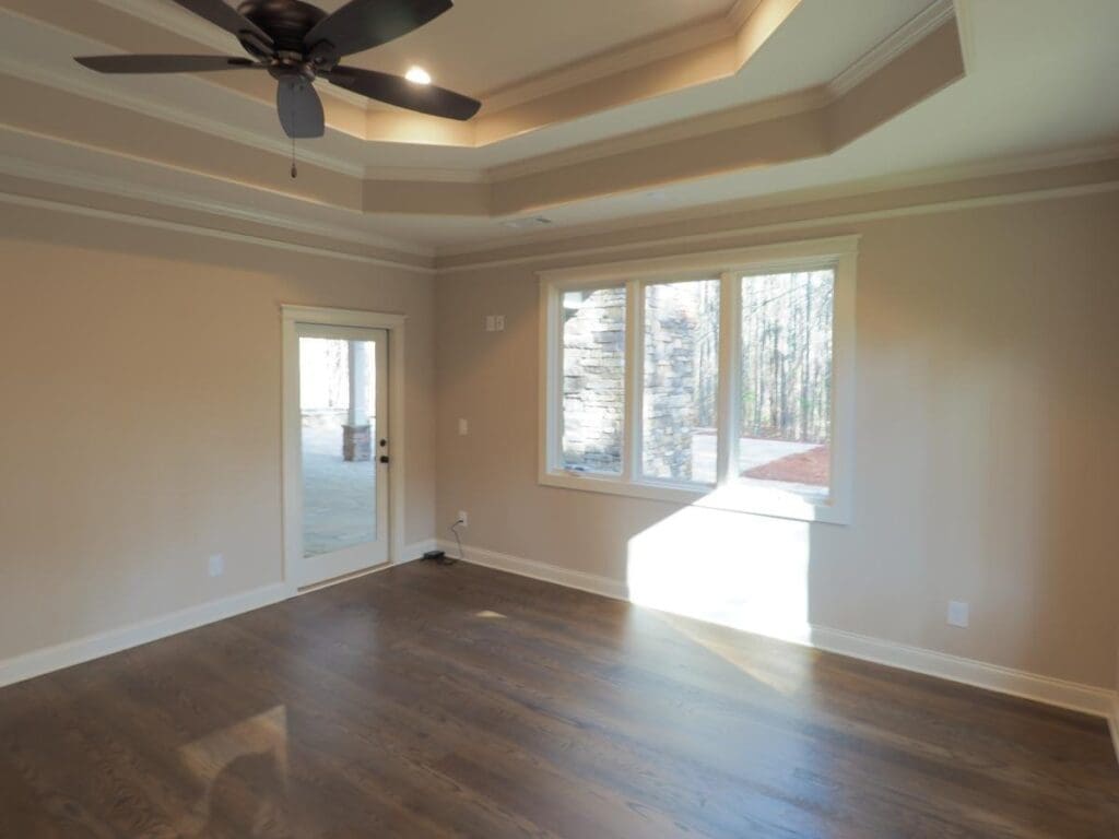 The master suite is the ultimate retreat with its double tray ceiling, vaulted master bathroom, and a window seat in the closet that’s basically begging for a little quiet reading nook.