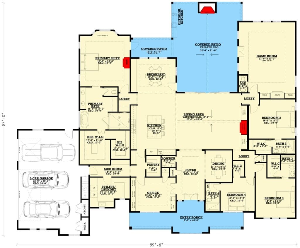 As if the main 3,990 square feet of heated living space weren’t enough, there’s an optional 650-square-foot bonus room above the garage.