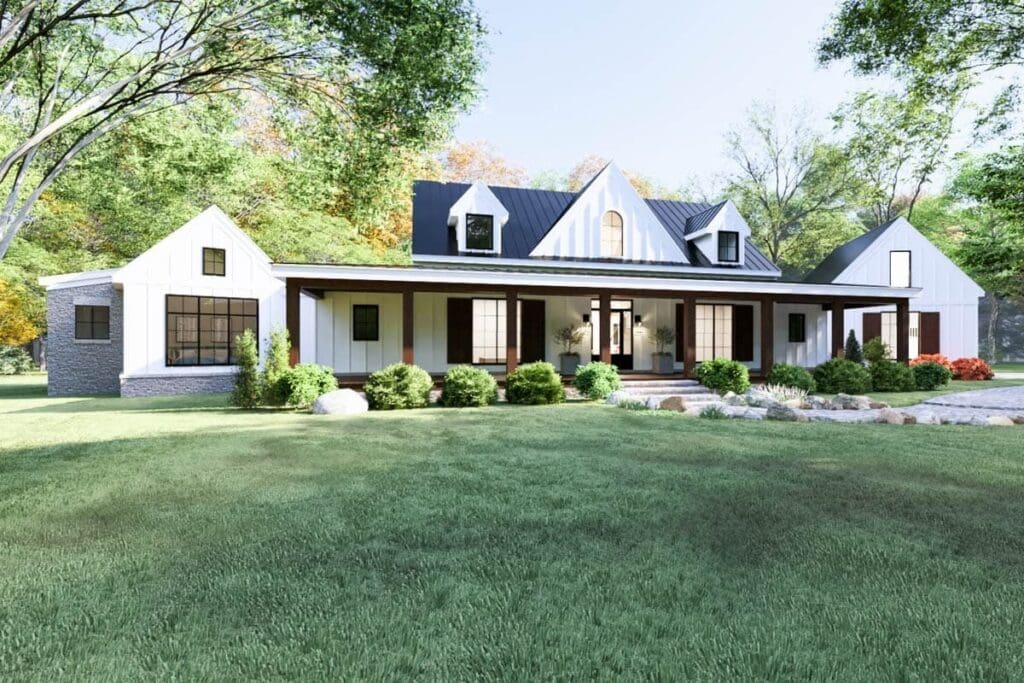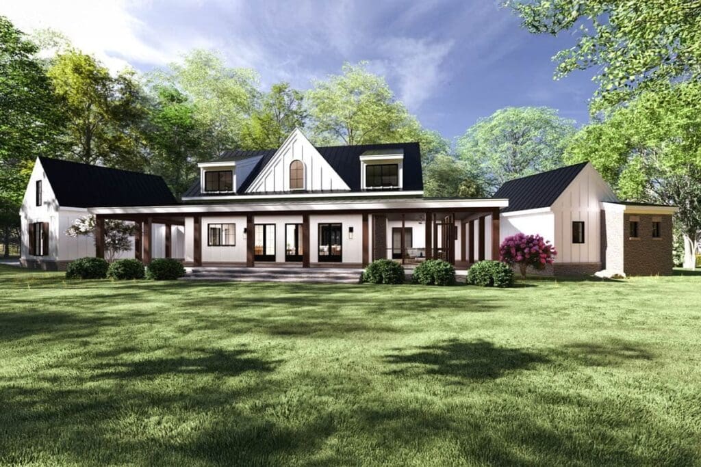 Out front, the porch creates that classic farmhouse welcome—a place for rocking chairs and morning coffee.