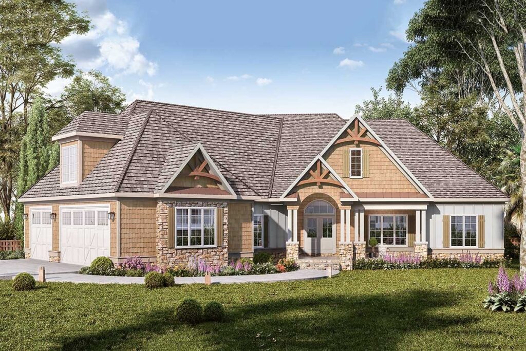 That’s exactly the vibe of the Designer Mountain Craftsman House Plan.
