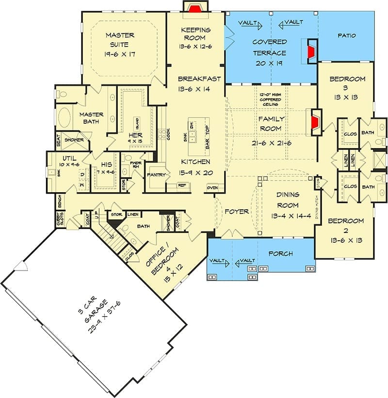 5-Bedroom One-Story Mountain Craftsman House with Bonus Room Over Garage (Floor Plan)
