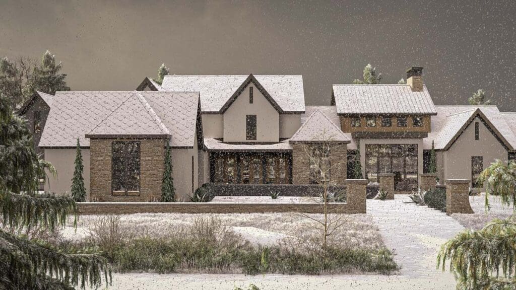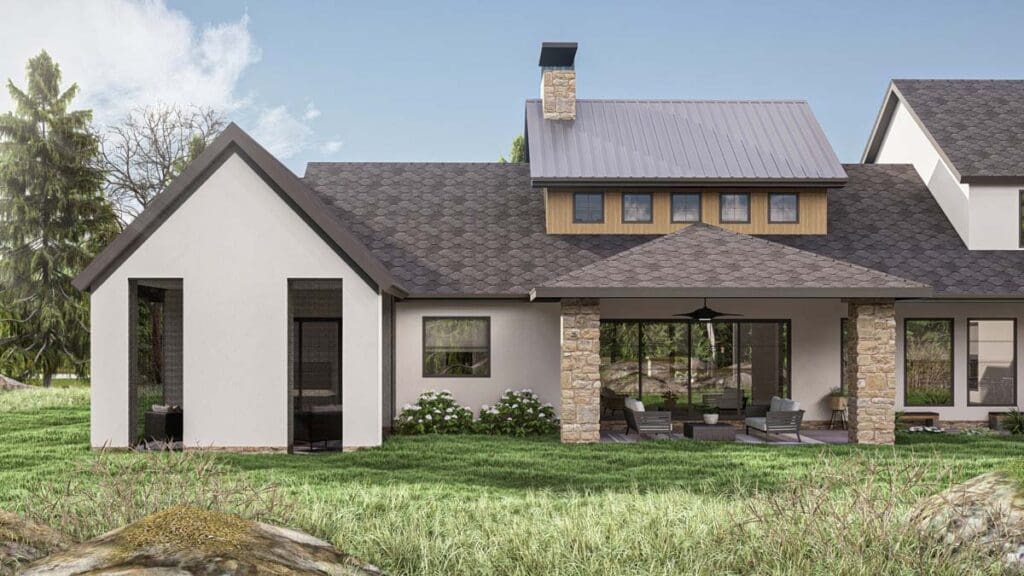 The exterior is an elegant marriage of modern European architecture and classic farmhouse materials.