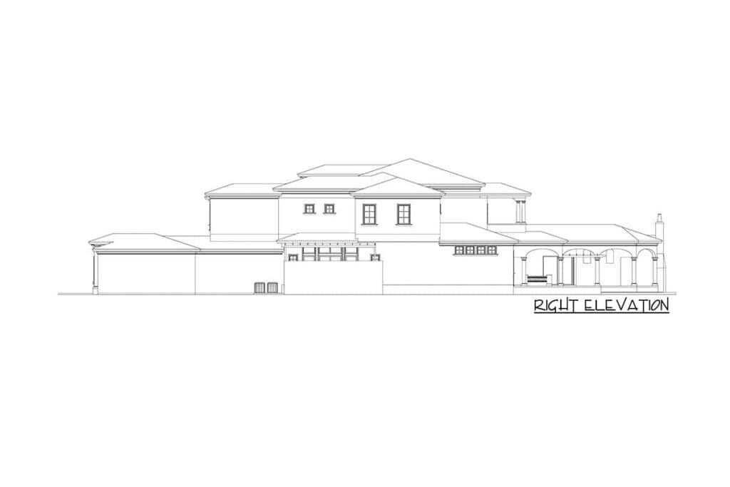 One of the most distinctive elements of this Mediterranean home plan is its eight-car garage.