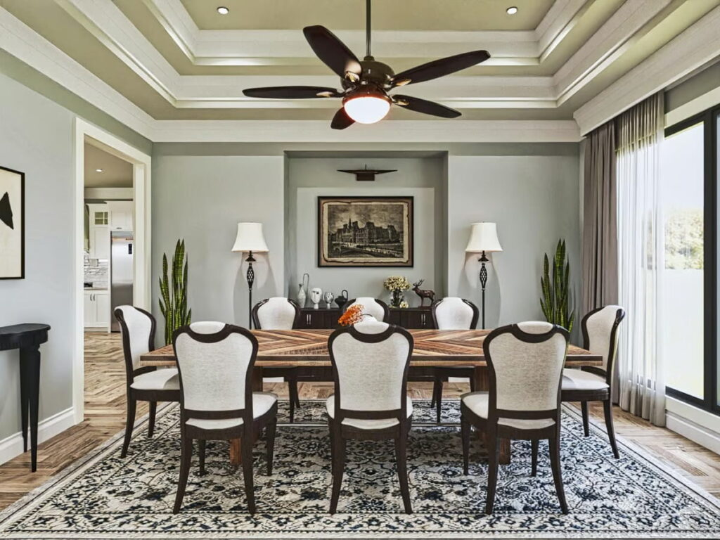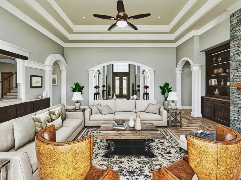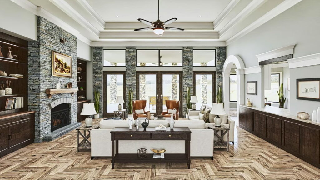 With elegant ceiling treatments, thoughtfully placed windows, and a covered porch so generous it might need its own zip code, this home is already setting the tone.