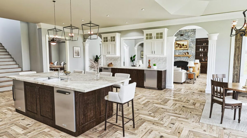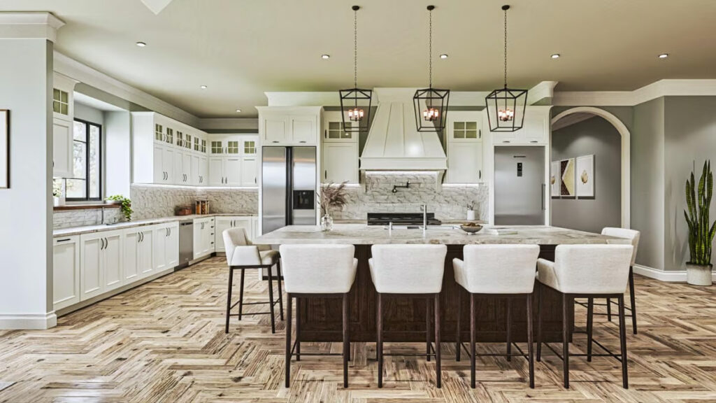 Picture double ovens, a giant island where you can prep a Thanksgiving dinner and host a sushi party simultaneously, and enough counter space to start your own cooking show.