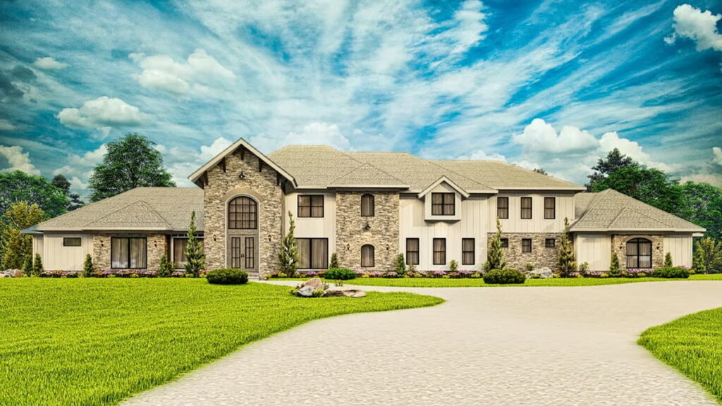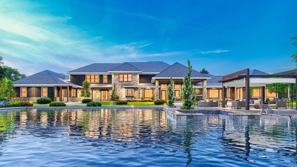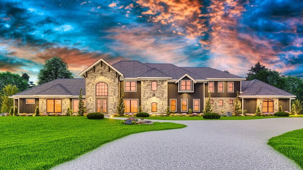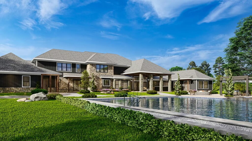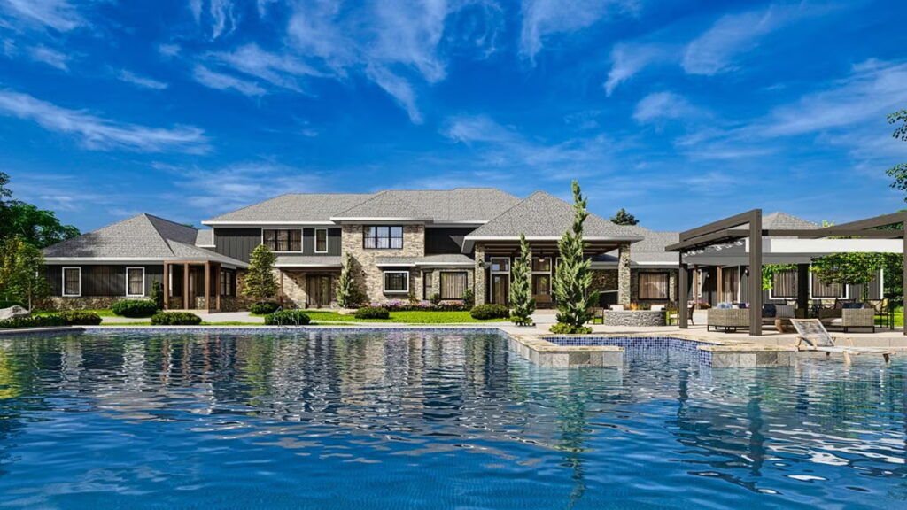 Well, buckle up, future mogul, because this 8,339-square-foot New American home plan is next level.