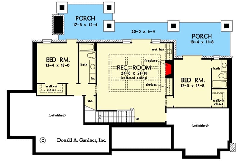 One of the unsung heroes of this plan? The study/bedroom combo. It’s got a coffered ceiling (yes, we’re getting fancy now) and a private bath, making it perfect as a remote office or a guest room with VIP treatment.
