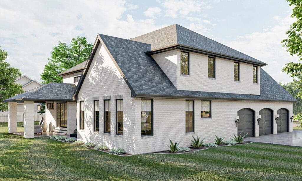 The three-car side-load garage makes a stylish statement and fits beautifully on a corner lot.