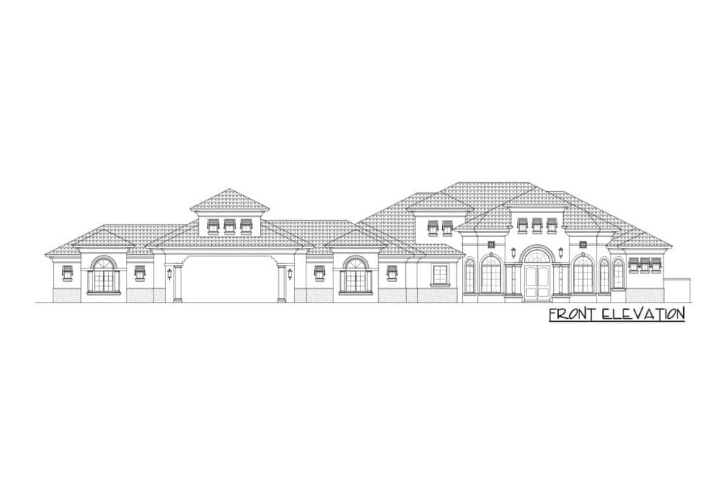 This Mediterranean floor plan doesn’t believe in barriers—it’s all about connection.