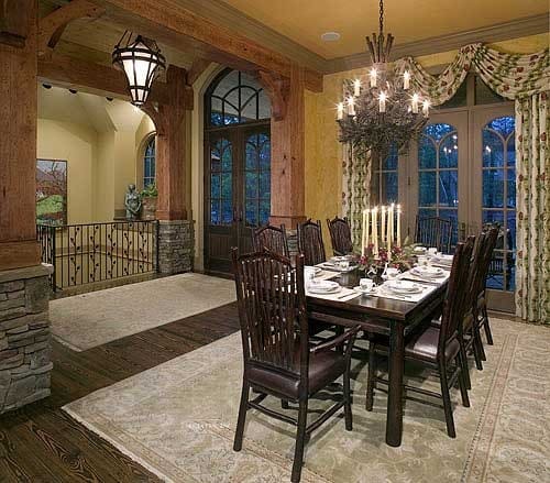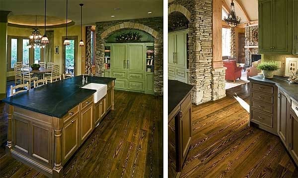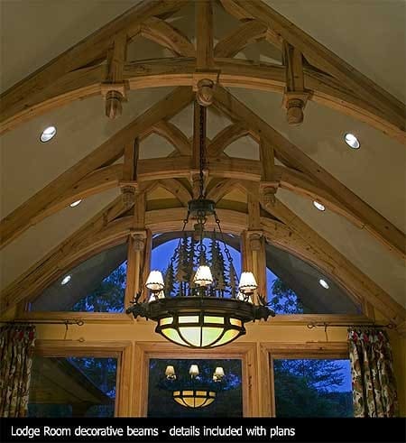 Connected directly to the lodge room are the kitchen, keeping room, and breakfast nook.