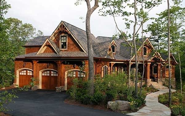 It’s thoughtfully designed with carved gable peaks, a charming dormer, and a complex, visually rich roofline that whispers “luxury lodge in the woods.”