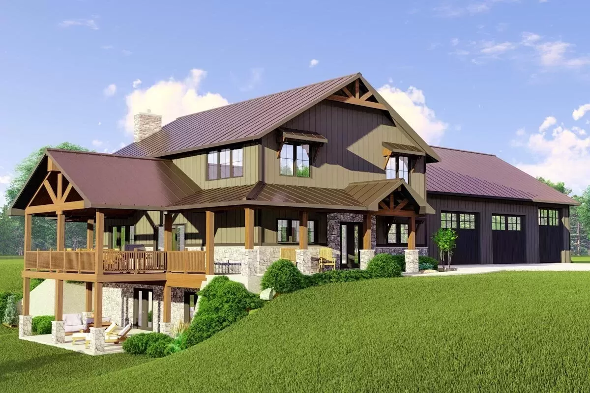 3-Bedroom 2-Story Barndominium House with Wraparound Porch and 2-Story Living (Floor Plan)