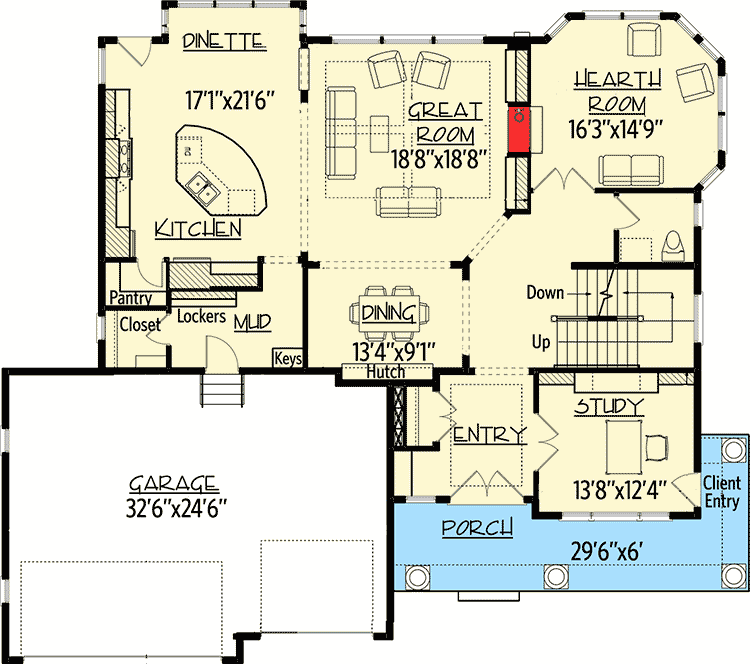 Storybook Style 5-Bedroom 2-Story House with Dual-Sided Fireplace (Floor Plan)