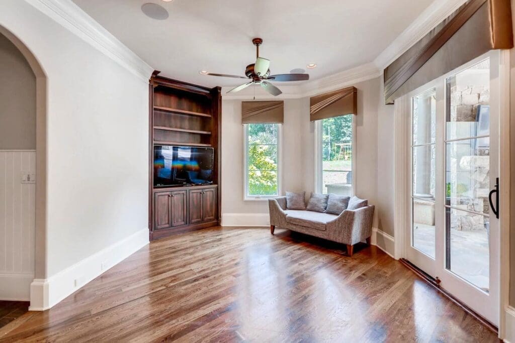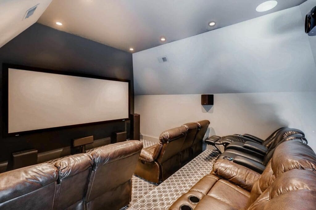 The man cave comes with a wet bar and a home theater setup, giving you the perfect spot to watch movies, stream sports, or disappear for a little “me time.”